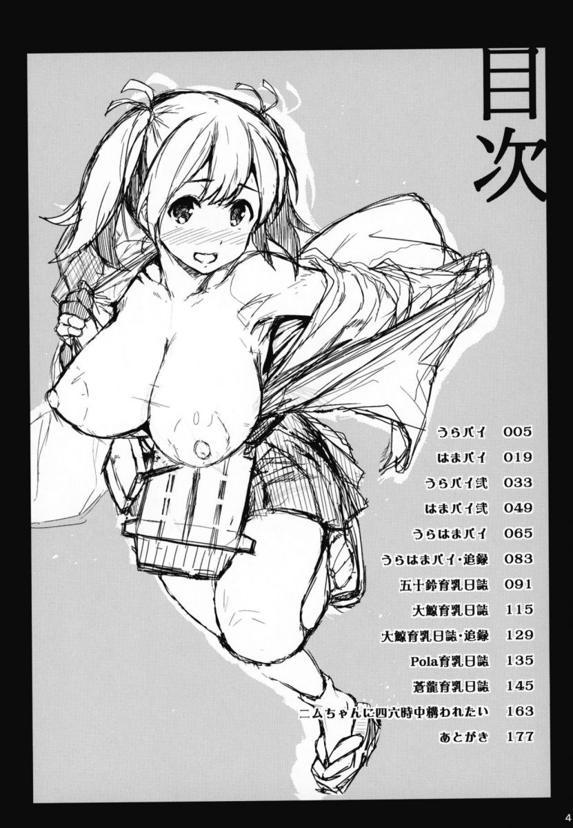 《舰っぱい》虽然被合成一本总集篇,不过至少可以推测以两个(以上)的镇守府为背景:以《OOぱい》为标题的是无名提督(也可能是两位以上的不同提督),以及《OO育乳日志》的地地雄育(日文音同育乳)提督先生。《OO育乳日志》的剧情比较简单,就是提督基于不纯心理,培育各巨乳舰娘的过程(没奶的也给你揉到大奶);《OOぱい》则是以巨乳驱逐舰为中心。第一本的《うらぱい》(浦派)以提督与广岛幼妻驱逐舰娘浦风结婚的新婚性生活为主,第二本的《はまぱい》则是浦风参加了长期远征后提督身心失落,因此被同样喜欢提督的浜风称虚而「入」(或者说提督强行进入),展开了一段犹如GALGAME《白色相簿》般的剧情……哪有!最后两人大和解,跟提督一起过著性福的3P生活了啦!整体来说相当实用,由于都是以巨乳舰娘为女主角,乳交、揉乳等玩法当然也是必不可少,其中以潜水舰的妈妈──潜水母舰大鲸为女主角的《大鲸育乳日志》还有母乳可喝,真是令人羡慕到不行。有剧情有H有奶子的舰娘本,好本不看吗?